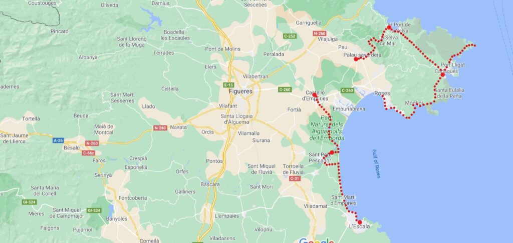 La Fosca to S’Agaró: After a transfer in the morning back to La Fosca, you head towards Palamós, you travel along the promenade at Palamós before picking up the beautiful Cami de Ronda coastal path, this is a lovely scenic route along the coast with the Mediterranean sparkling in the sun on your left and pine clad hills on the your right. You’ll pass the harbour at Playa de Aro and cross the sandy beach at Sa Cuenca Bay and finally onwards to your final destination, S’Agaró. 19.1 km (11.8 miles), 4 hrs 30 mins walking time